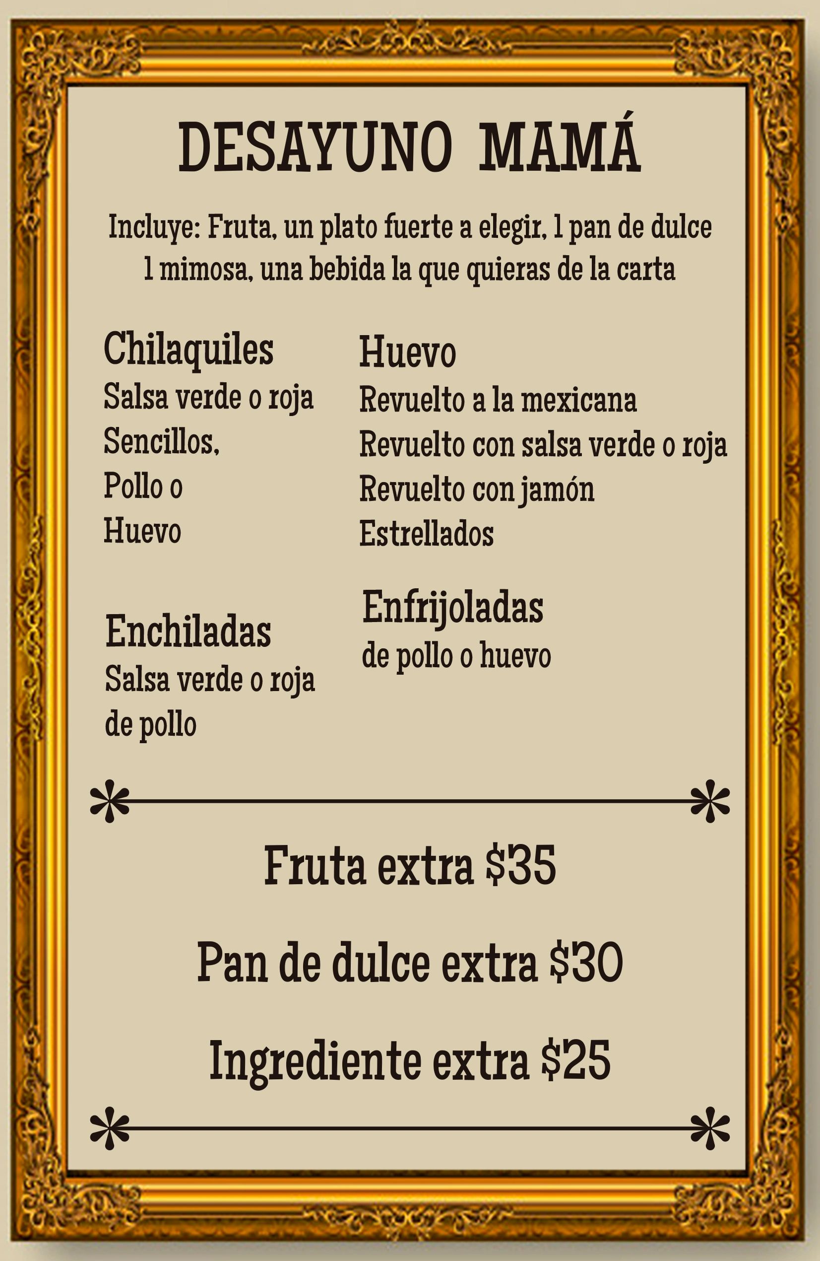 MENU DÍA DE LAS MADRES DISPONIBLE EXCLUSIVAMENTE 9 Y 10 DE MAYO